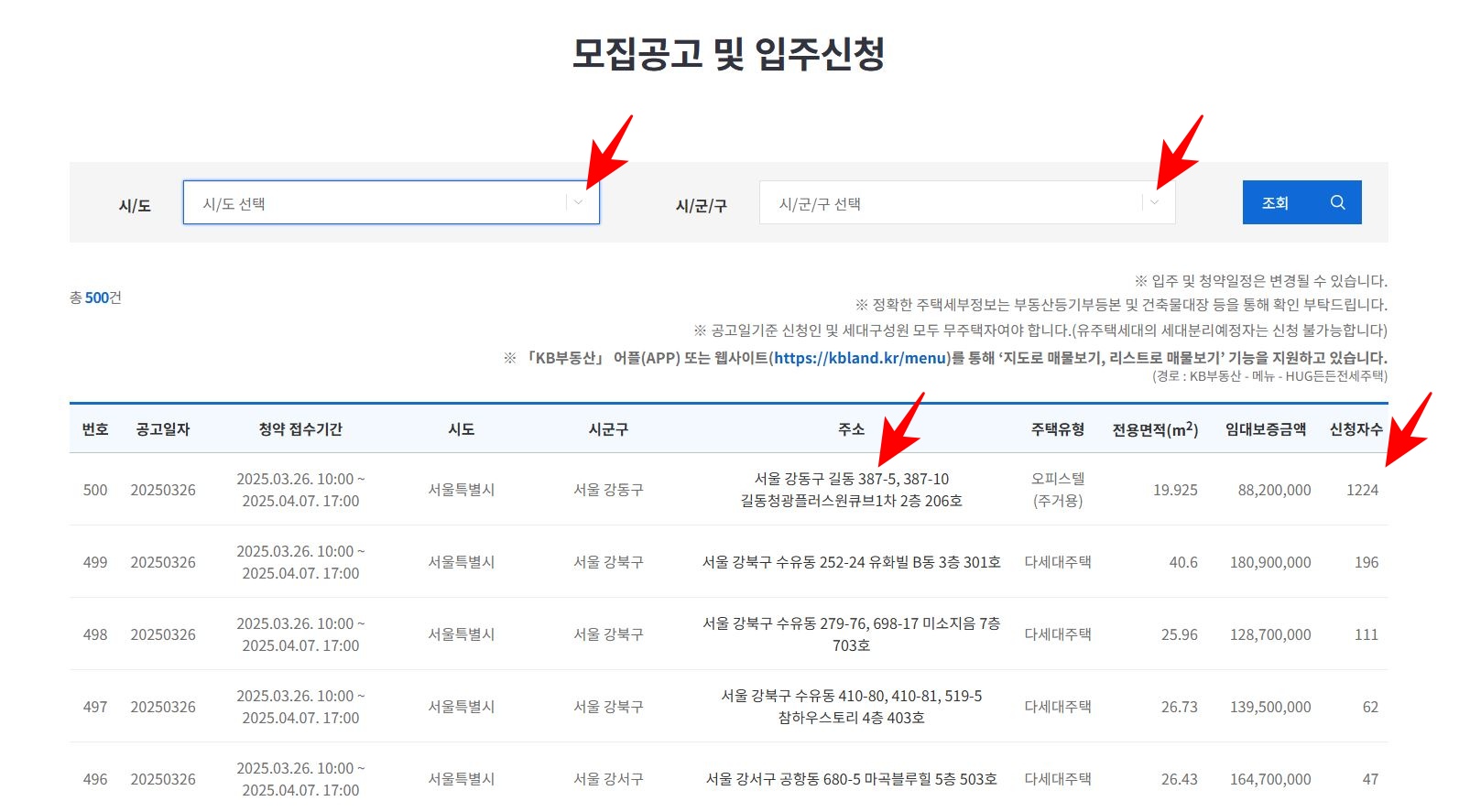 - 공고 확인: 신청 전, 모집 공고문에서 원하는 주택의 정보를 확인합니다.